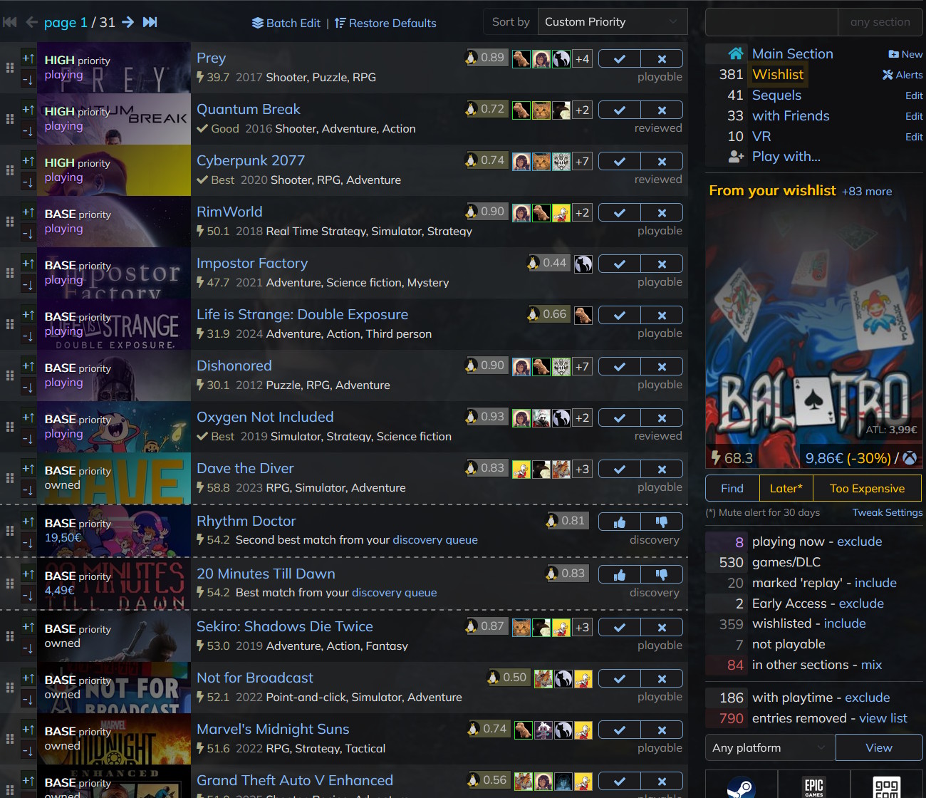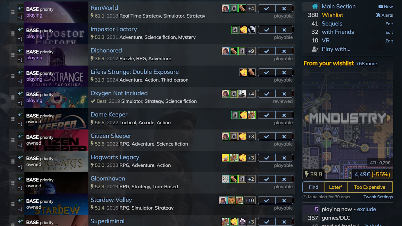 Keep an eye on price drops across multiple stores and platforms. Get notified when a game you're following leaves Early Access or adds new DLC.